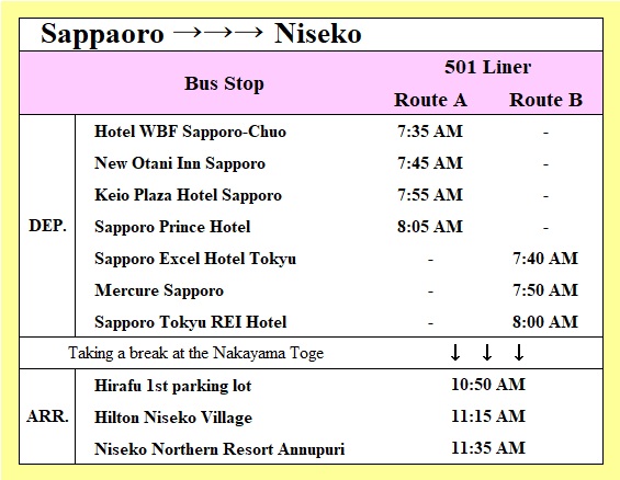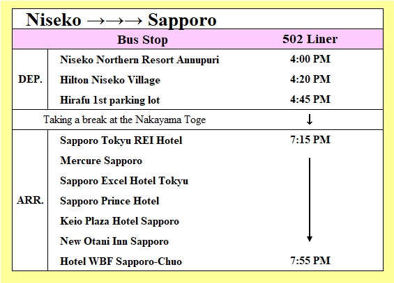 Hotels in Sapporo ”Hokkaido Resort Liner 501” Bus Stop